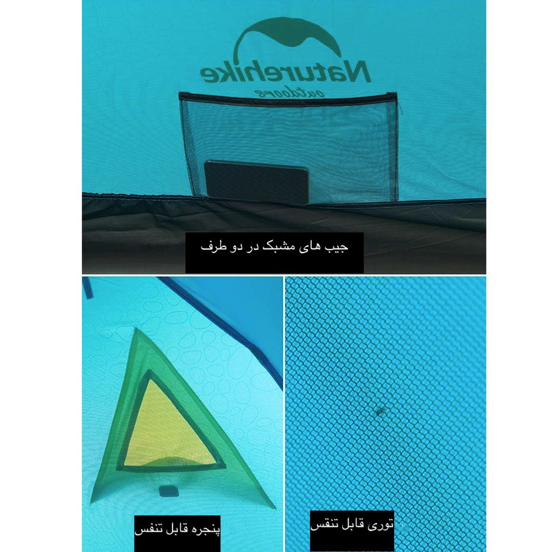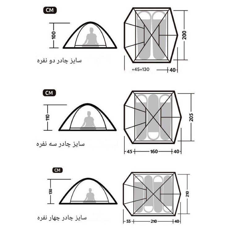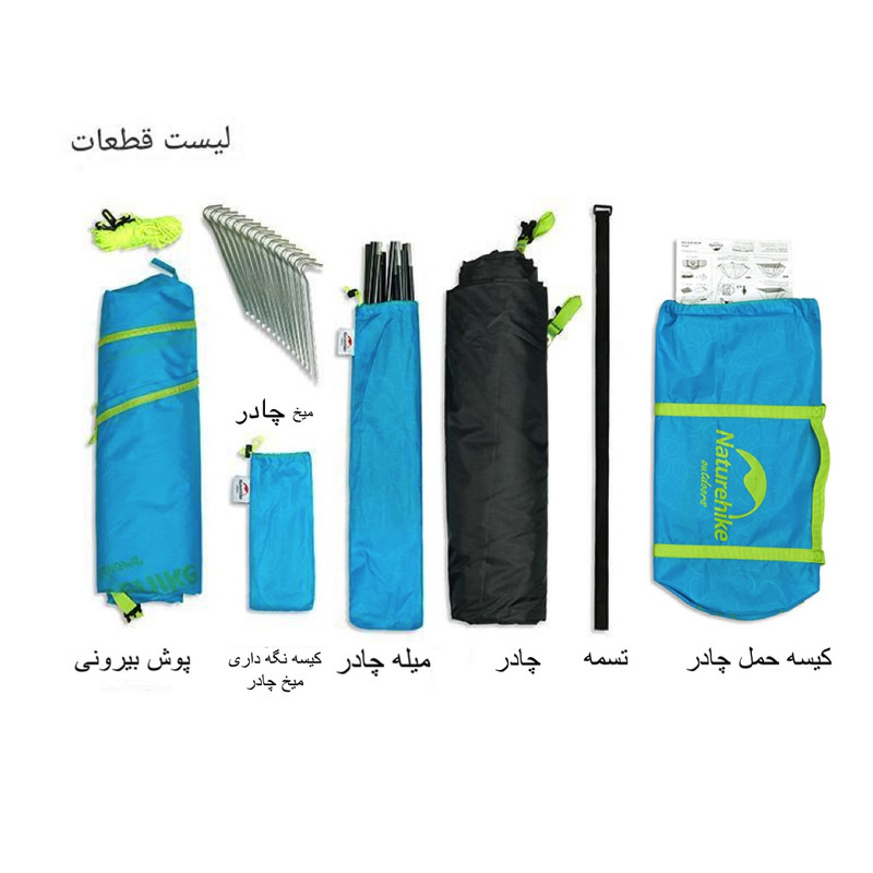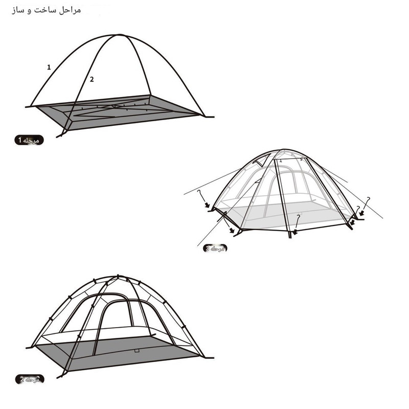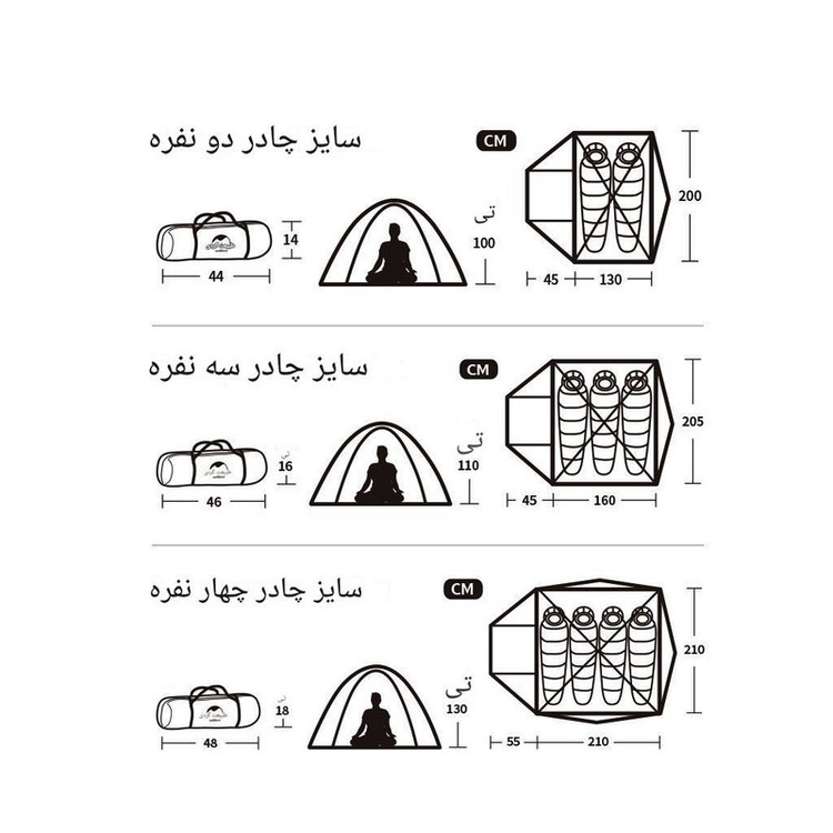 جنس پارچه کف چادر:پلی استر 210T با پوشش فایبر جنس پوشش دوم: پلی استر 210 با پوشش فایبر شاخص مقامت در برابر آب و باران: 3000 میلی متر
