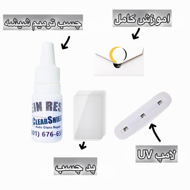 چسب ترمیم ترک شیشه / پد شفاف / اموزش / چراغ UV