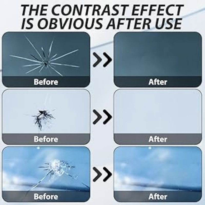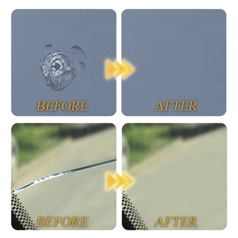 این محصولی متفاوت برای ترمیم شیشه خودرو با هزینه کم میباشد. دیگر نیازی به تعویض شیشه خودرو در هنگام ترک خوردگی و آسیب کوچک نمیباشد، این محصول به آسانی آن را ترمیم مینماید. داخل این پک مایع رزین وجود دارد که بخش آسیب دیده را پر میکند، شفاف بودن این محصول، مانع دید راننده نمیشود. این پک کامل بوده و با مطالعه روش استفاده آن، به راحتی میتوان آسیب دیدگی را ترمیم نمود