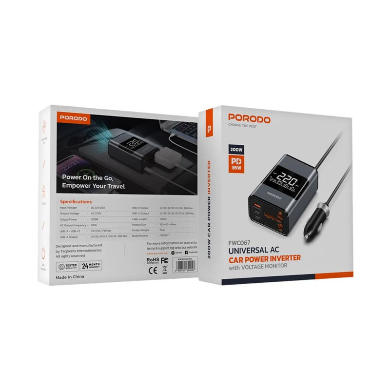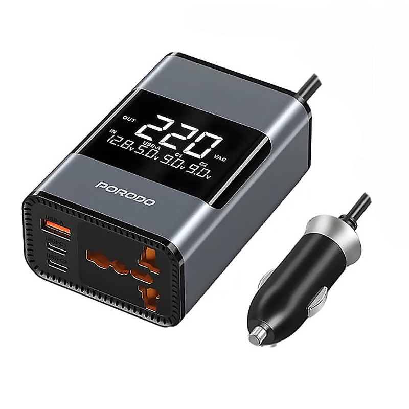 مبدل برق خودرو پرودو مدل 200W Porodo Universal AC Car Power Inverter PDFWCH067GY