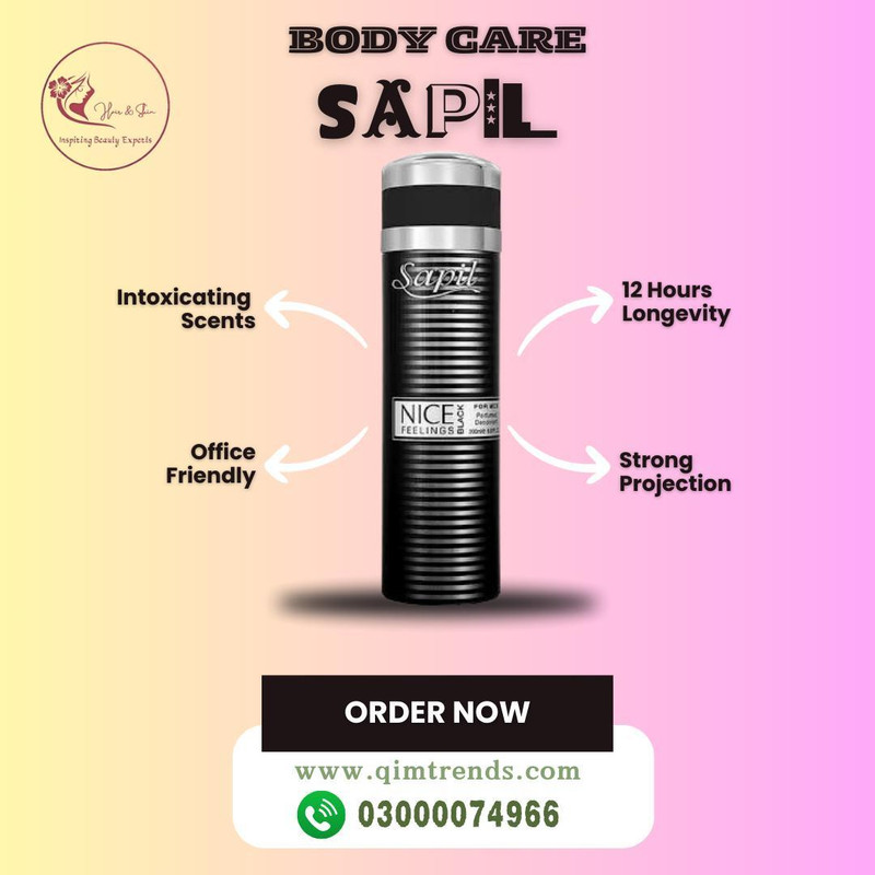 اسپری خوشبو کننده بدن مردانه ساپیل مدل نایس بلک حجم 200 میلی لیتر