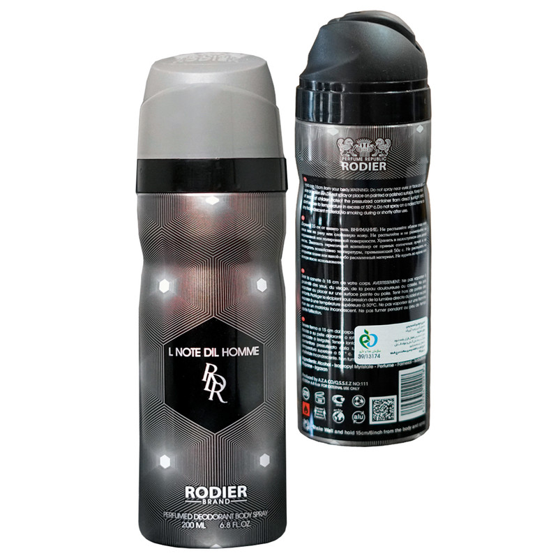 اسپری بدن مردانه رودیر مدل L note dil homme حجم 200 میلی لیتر