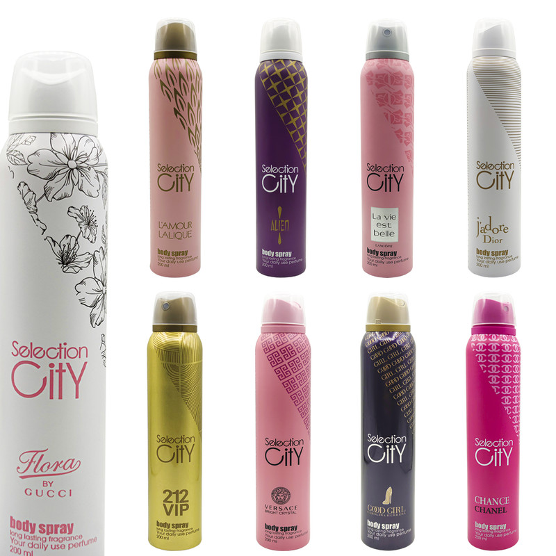 اسپری خوشبو کننده بدن زنانه سلکشن سیتی مدل FE9 حجم 200 میلی لیتر مجموعه 9 عددی