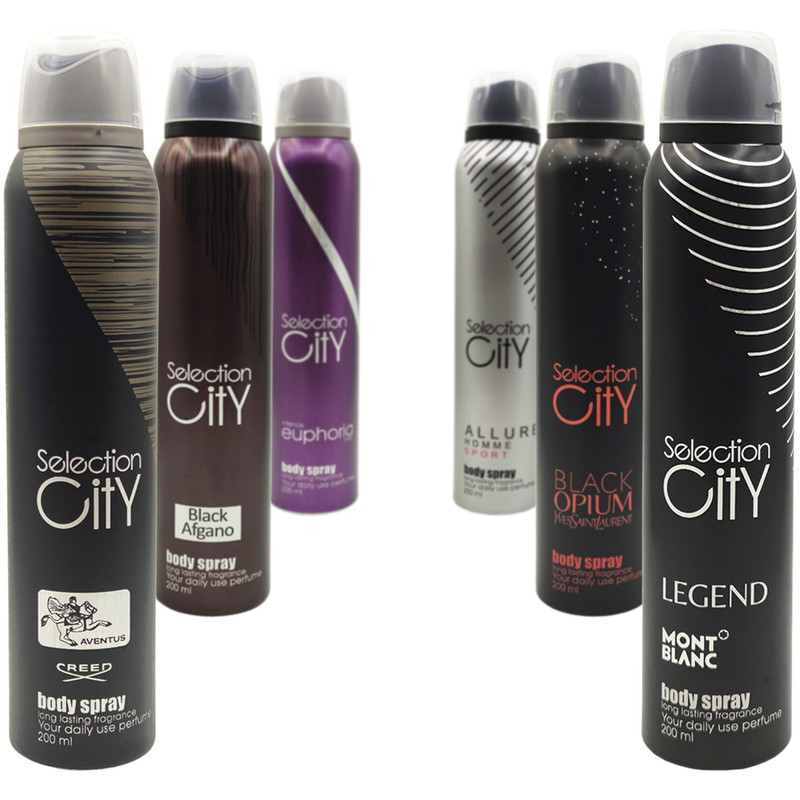 اسپری خوشبو کننده بدن مردانه سلکشن سیتی مدل ME6-2 حجم 200 میلی لیتر مجموعه 6 عددی