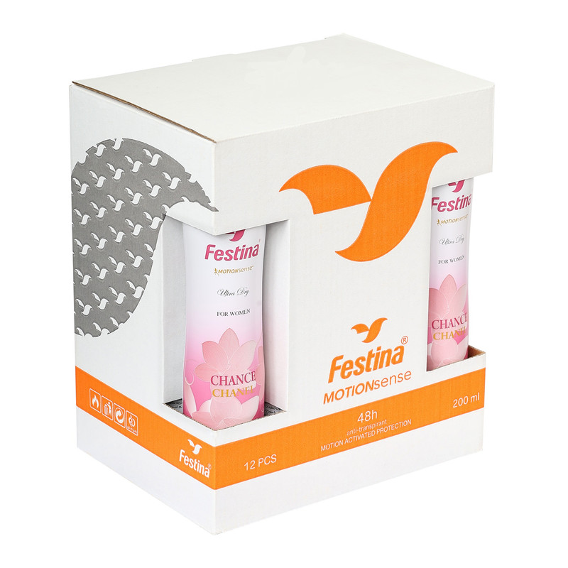 اسپری بدن زنانه فستینا چنس شنل با رایحه گرم حجم 200 میلی لیتر مجموعه 12 عددی