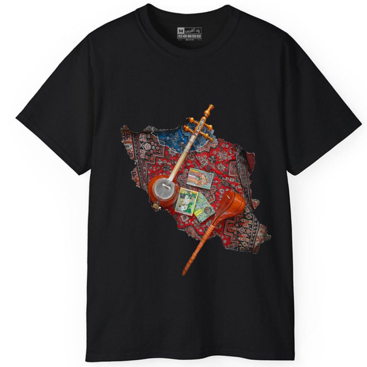 تیشرت آستین کوتاه مردانه پاد آفرین مدل موسیقی ساز نقشه ایران فرش ایرانی کد 1620