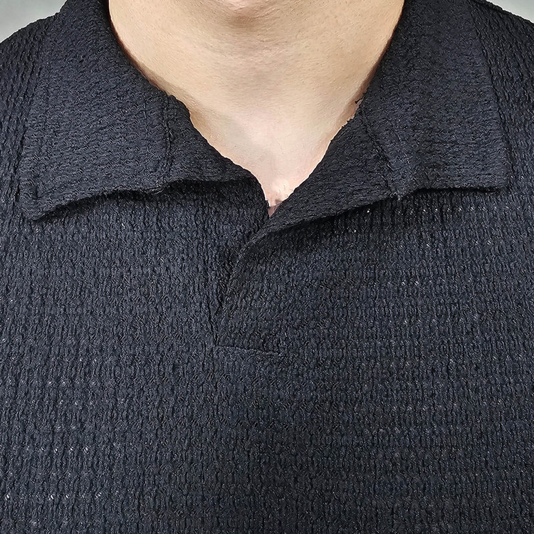 کار دارای یقه برگردان می باشد و سر آستین و دم پای کار ساده می باشد