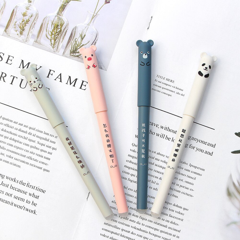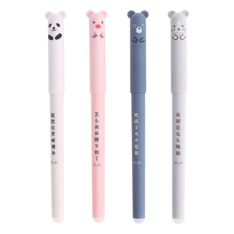 چهار عدد روان نویس فانتزی پاک کن دار طرح حیوانات. انتهای روان نویس مجهز به پاک کن بسیار با کیفیت و مخصوص است که قابلیت پاک کردن نوشته های این روان نویس را دارد.