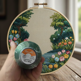 رنگ **Dark Blue Green** این نخ، روی پارچههای متضاد مانند کتان سفید یا بژ روشن، کنتراستی فوقالعاده زیبا ایجاد میکند. همانطور که در توصیفها اشاره شده، این رنگ واقعاً حس **"عمق زمردین شب"** را القا میکند. براقیت آن متعادل است—نه آنقدر مات که کدر به نظر برسد و نه آنقدر براق که از پارچه بیرون بجهد. نتیجه نهایی روی پارچه، حالتی **مخملی و باوقار** دارد.