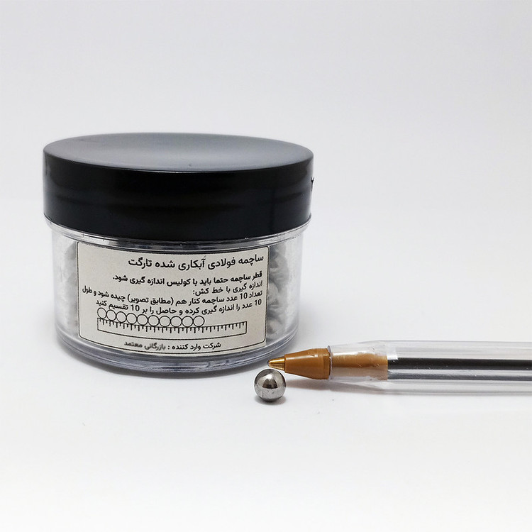 تعداد 200 عدد ساچمه فولادی آبکاری شده به قطر 5 میلیمتر در بسته بندی کریستالی موجود میباشد.