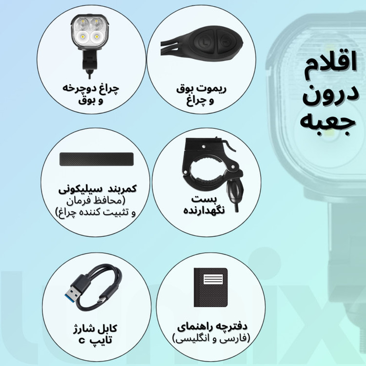 محل نصب چراغ: برای استفاده در جلوی دوچرخه