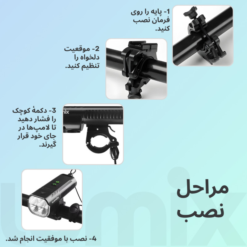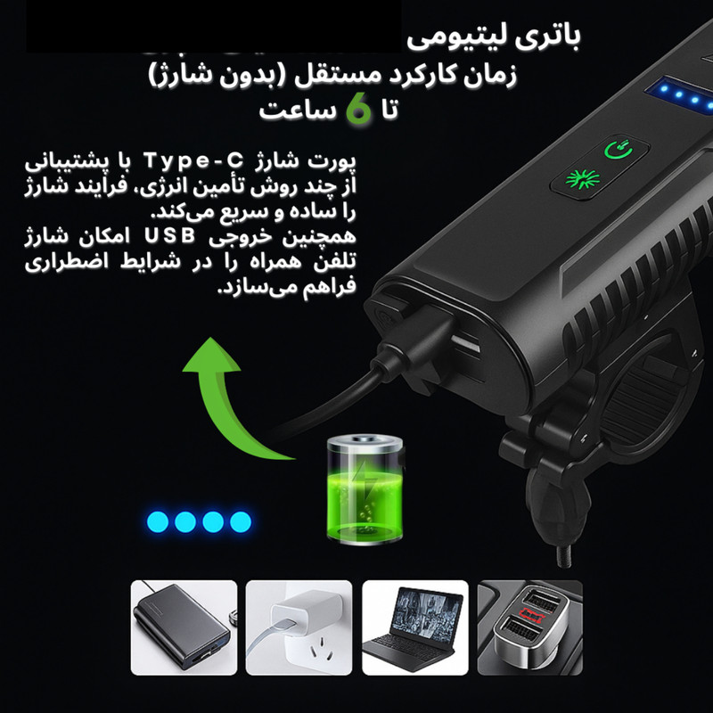 محل نصب چراغ: برای استفاده در جلوی دوچرخه