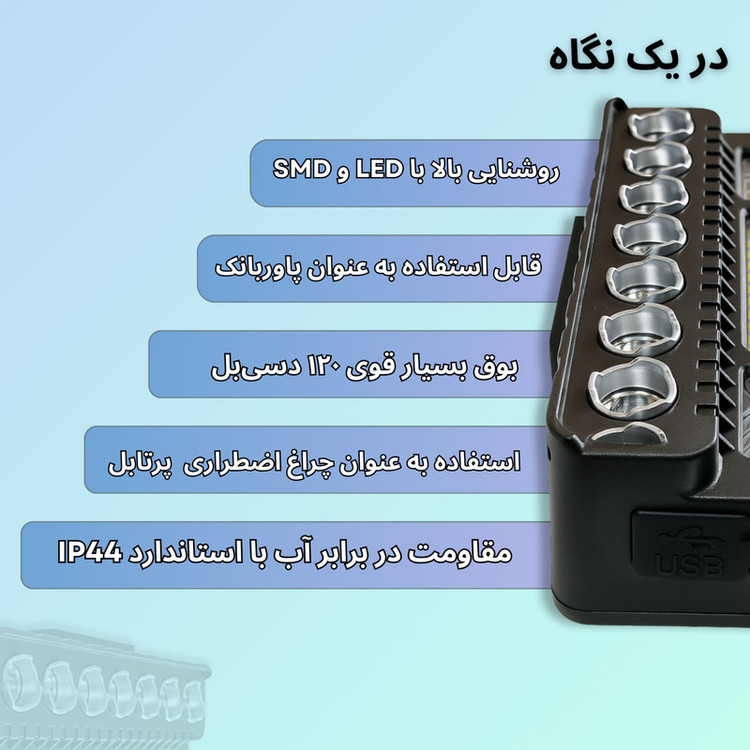 وجود بوق قدرتمند 120 دسیبل یکی دیگر از نقاط قوت این چراغ محسوب میشود که باعث میشود حضور شما در مسیر بهوضوح شنیده شود و ایمنی بیشتری هنگام عبور از خیابانها و مسیرهای شلوغ داشته باشید. این محصول دارای 7 حالت نوردهی شامل نور قوی، متوسط، ضعیف، فلاش سریع و فلاش آرام است و همچنین ۵ حالت بوق مختلف دارد که میتوانید متناسب با شرایط و سلیقه خود آنها را تنظیم کنید.