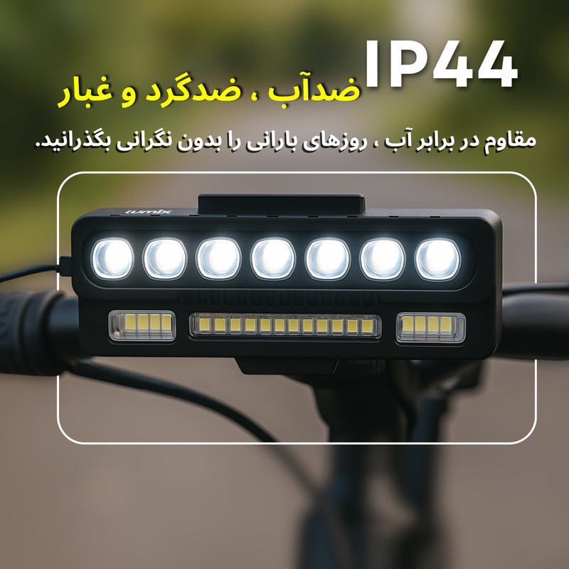 چراغ جلو دوچرخه Lumix مدل LX-1500 گزینهای ایدهآل برای دوچرخهسوارانی است که به دنبال روشنایی قدرتمند، ایمنی بالا و امکانات کاربردی در کنار طراحی حرفهای هستند. این چراغ با بدنهای مقاوم از جنس ABS ساخته شده و به لطف استاندارد ضدآب IP65، در شرایط مختلف آبوهوایی از جمله باران و رطوبت، عملکردی مطمئن و پایدار ارائه میدهد.