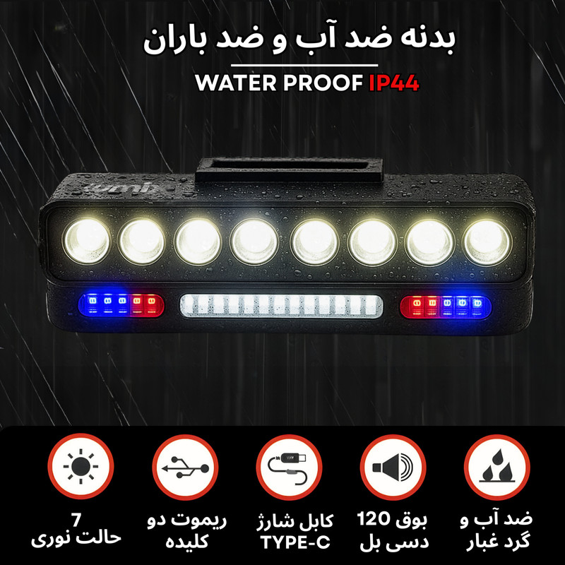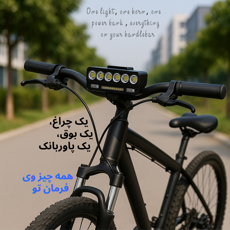 وجود بوق قدرتمند 120 دسیبل یکی دیگر از نقاط قوت این چراغ محسوب میشود که باعث میشود حضور شما در مسیر بهوضوح شنیده شود و ایمنی بیشتری هنگام عبور از خیابانها و مسیرهای شلوغ داشته باشید. این محصول دارای 7 حالت نوردهی شامل نور قوی، متوسط، ضعیف، فلاش سریع و فلاش آرام است و همچنین ۵ حالت بوق مختلف دارد که میتوانید متناسب با شرایط و سلیقه خود آنها را تنظیم کنید.