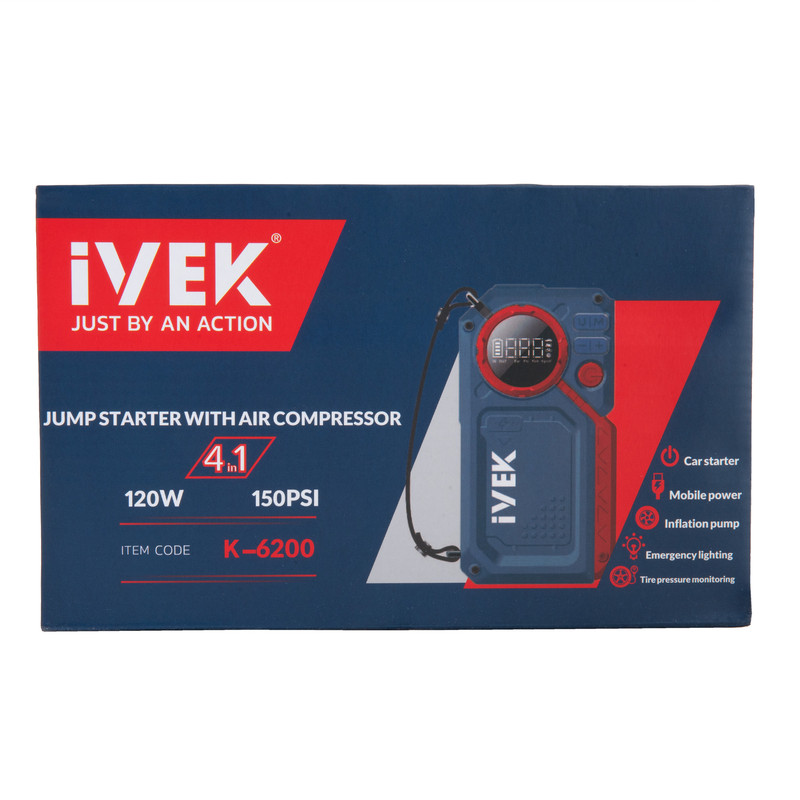 دارای سری شارژر فندکی مخصوص ماشین با خروجی USB و Type-C برای شارژکردن لپتاپ ها و سایر دستگاهها ، دارای چهار عدد متعلقات کمپرسور برای بادکردن وسایل مختلف ، به همراه سیم شارژر Type-C ، گیره متصل شونده به باتری خودرو ، شلنگ رابط کمپرسور