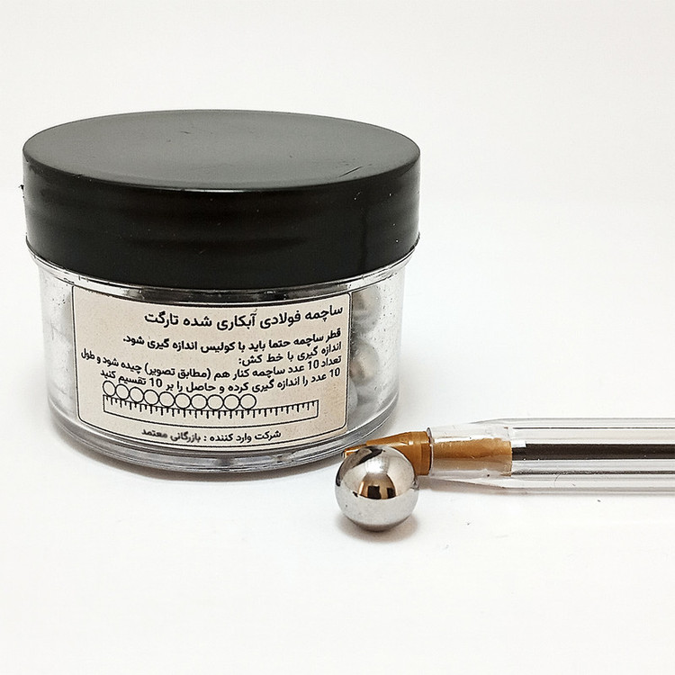تعداد 30 عدد ساچمه فولادی آبکاری شده به قطر 9 میلیمتر در بسته بندی کریستالی موجود می باشد.