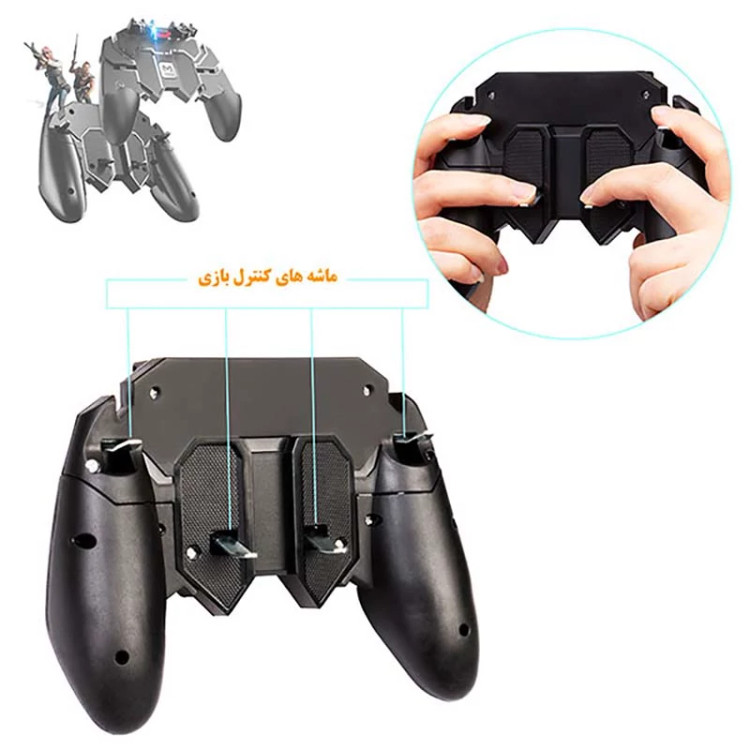 بر روی این دسته چهار اهرم قرار دارد که در قسمت پشتی دسته بازی قرار گرفته اند و به ۴ دسته کوچک وصل می شوند که در بالای PubG AK-66 قرار گرفته است، و شما با فشار دادن اهرم ها می توانید دسته ها را کنترل نمایید تا قدرت عملکرد خود را در بازی ها بالا ببرید. اهرم ها معمولا برای بازی های اکشن برای زوم کردن و شلیک بکار می روند. وجود چهار اهرم در دسته بازی موبایل ممو مدل PubG AK-66 باعث شده تا بتوانیم برای قابلیت هایی نظیر عوض کردن خشاب، پرش یا تغییر بین اسلحه ها هم دکمه اهرمی برای دسترسی سریعتر داشته باشیم.