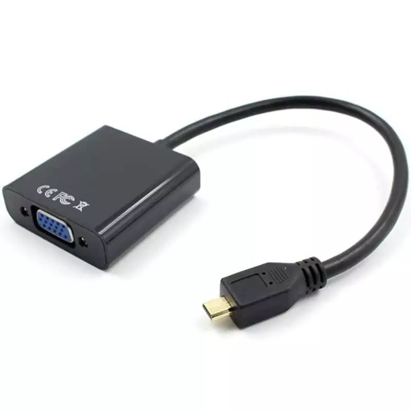تبدیل میکرو اچ دی ام ای قابل استفاده برای انتقال تصویر از دستگاههایی مانند موبایل ، تبلت و … که دارای پورت Micro HDMI هستند ( این پورت با Micro USB متفاوت است ) به مانیتور های LCD و LED و ویدیو پرژکتور با پورت VGA است.برای استفاده از تبلت بهتر است از نوع معمولی سفارش ندهید چون احتمال جواب ندادن روی آن ها به علت بالا بودن رزولیشن تصویر وجود دارد. چون تبلت ها به علت اینکه سیگنال خروجی HDMI آنها ضعیف می باشد بهتر است از نوع BAFO که دارای پورت ورودی پاور است استفاده کنید. مدل BAFO دارای خروجی با رزولیشن حداکثر ۱۰۸۰ * ۱۹۲۰ و کیفیت تصویر بالاتری نسبت به انواع دیگر دارد.بعضی از دوربین های فیلمبرداری و یا دستگاه هایی که با هیچ کدام از تبدیل های موجود جواب نمی دهند و یا متراژ کابل VGA متصل به تبدیل بلند است توصیه می شود از تبدیل BAFO تهیه کنند.