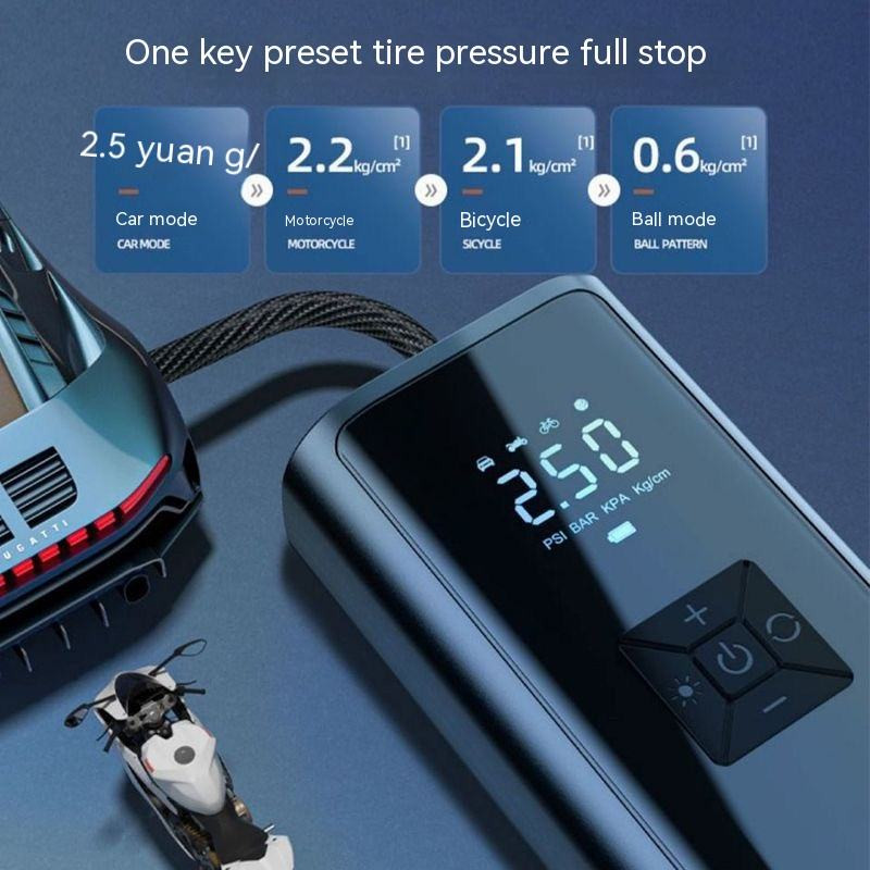 پمپ باد فندکی دیجیتال بیسیم مدل Air Compressor Wireless Display Upgrade یک دستگاه کاربردی و قابل حمل است که برای باد کردن سریع لاستیک خودرو، موتور، دوچرخه یا وسایل ورزشی طراحی شده است. این دستگاه با قدرت 120 وات و فشار حداکثری 150PSI، قادر است در کمتر از ۶۰ ثانیه یک تایر را بهطور کامل باد کند و عملکردی سریع، دقیق و مطمئن به رانندگان ارائه دهد. استفاده از موتور مسی و بلوک فلزی در ساخت آن باعث افزایش دوام و عملکرد پایدار در هر شرایط آبوهوایی میشود. طراحی بیسیم به شما امکان استفاده آسان بدون دغدغه کابلهای اضافی را میدهد و نمایشگر دیجیتال هوشمند، فشار باد را با دقت کامل نشان میدهد. علاوه بر قابلیت بررسی فشار تایر، چراغ LED تعبیه شده در آن باعث میشود شبهنگام نیز بتوانید بهراحتی از دستگاه استفاده کنید. این پمپ با ولتاژ ورودی 12 ولت DC و جریان 10 آمپر از درگاه فندکی خودرو تغذیه میشود و طول کابل 3 متری، آزادی عمل بیشتری برای دسترسی به لاستیکهای جلو و عقب فراهم میکند. ساختار فلزی، طراحی ارگونومیک و اندازه مناسب باعث میشود همیشه همراه مطمئن شما در سفر باشد. اگر دنبال پمپی هستید که سریع، دقیق، بیسیم و قابل اعتماد باشد، این مدل بهترین انتخاب شماست. مناسب برای تمام خودروهای سواری، موتور، دوچرخه و وسایل ورزشی — ابزاری ضروری برای هر رانندهی هوشمند .