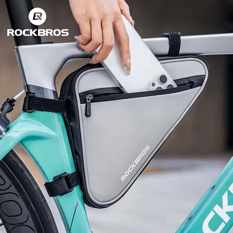 طراحی مثلثی و باریک بدون ایجاد مزاحمت هنگام حرکت بدنه شب نما برای افزایش دید و ایمنی در شب نصب سریع و مطمئن بدون آسیب به فریم وزن سبک با فضای داخلی کاربردی کیفیت ساخت بالا از برند معتبر ROCKBROS مناسب استفاده شهری، جاده ای، کوهستانی و موتوری