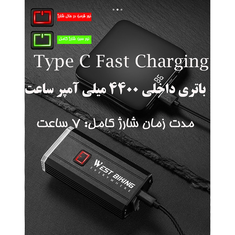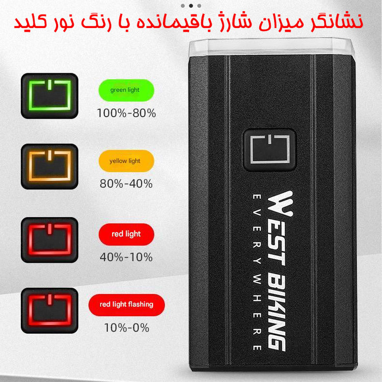 ظرفیت باتری: 4400 میلی آمپر ساعت استاندارد ضد آب IPX6 بدنه آلومنیومی دارای سه عدد لامپ T6