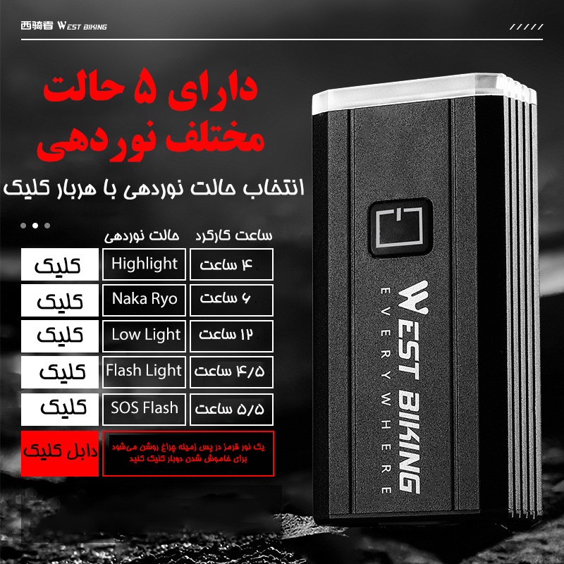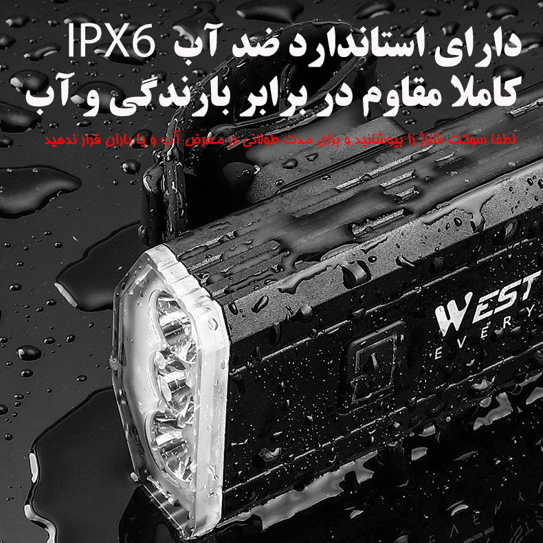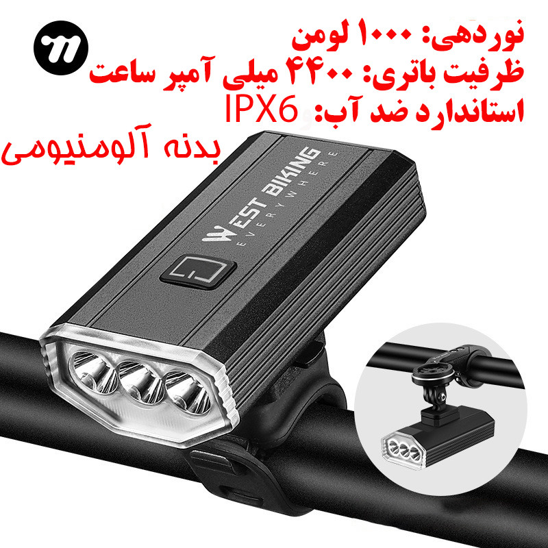 ظرفیت باتری: 4400 میلی آمپر ساعت استاندارد ضد آب IPX6 بدنه آلومنیومی دارای سه عدد لامپ T6