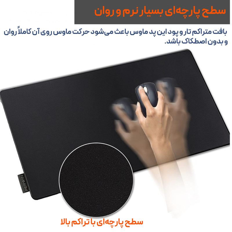 پد ماوس پروین مدل DE-35 در سایز ۳۰×۷۰ سانتیمتر ترکیبی ایدهآل از کیفیت ساخت بالا، راحتی و طراحی کاربردی است که نیازهای گیمرها، کاربران اداری و کاربری عمومی را بهطور همزمان پوشش میدهد. این سایز متوسط فضای کافی برای حرکت آزاد ماوس و حتی قرار دادن بخشی از کیبورد فراهم میکند و تجربهای روان و دقیق در محیطهای کاری و گیمینگ ارائه میدهد. سطح رویی پد از پارچه متراکم ساخته شده که حرکت ماوس را کاملاً روان و بدون اصطکاک میکند، باعث افزایش دقت در بازیهای حساس، طراحی گرافیکی و کارهای اداری میشود و تجربهای لذتبخش از کار با ماوس فراهم میآورد. پارچه متراکم علاوه بر نرمی و راحتی، دوام بالایی دارد و در طول زمان شکل و کیفیت اولیه خود را حفظ میکند، بدون آنکه ساییده یا ناصاف شود.