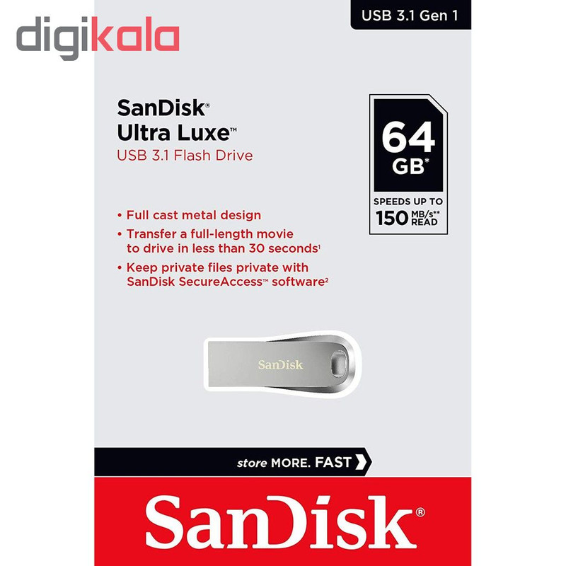 فلش مموری سن دیسک مدل Ultra Luxe ظرفیت 64 گیگابایت با رابط USB 3.1