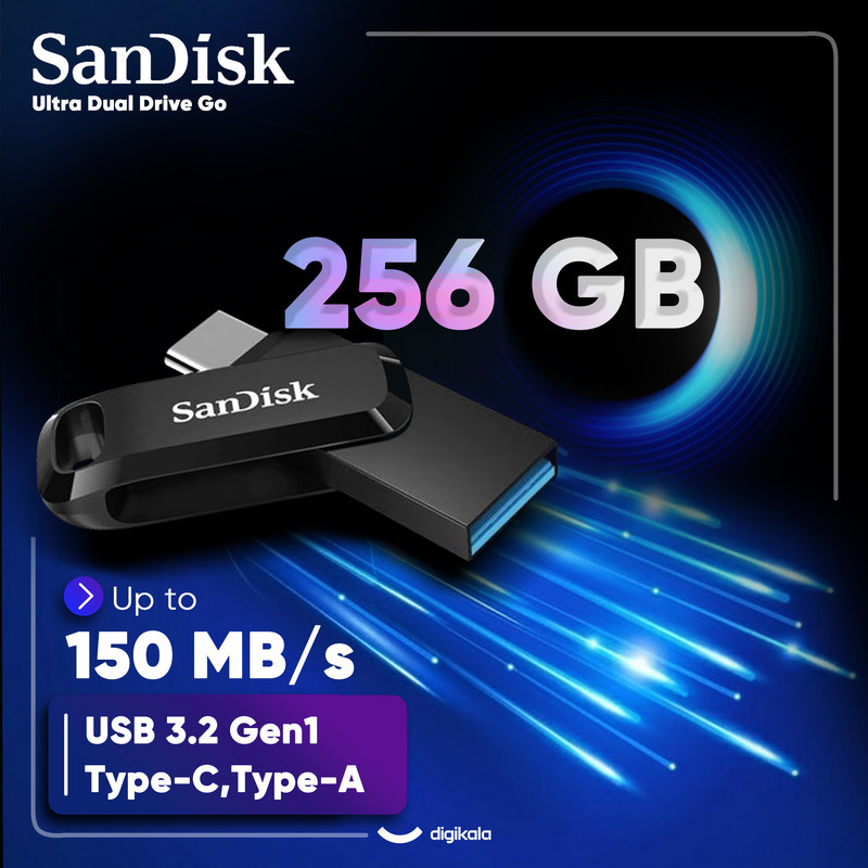 فلش مموری سن دیسک مدل Ultra Dual Drive Go ظرفیت 256 گیگابایت با رابط USB 3.1، USB Type-C