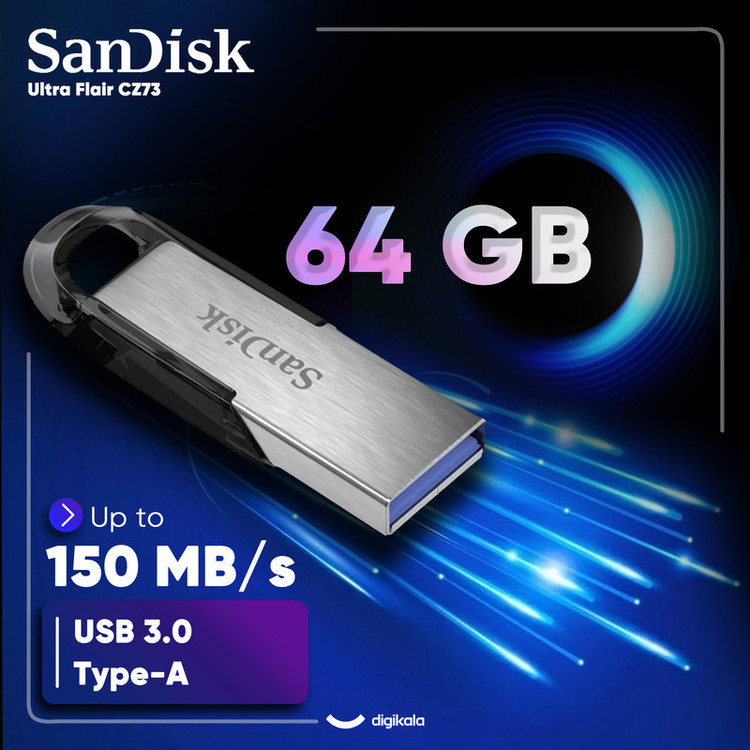 فلش مموری سن دیسک مدل Ultra Flair CZ73 ظرفیت 64 گیگابایت با رابط USB 3.0، USB 2.0
