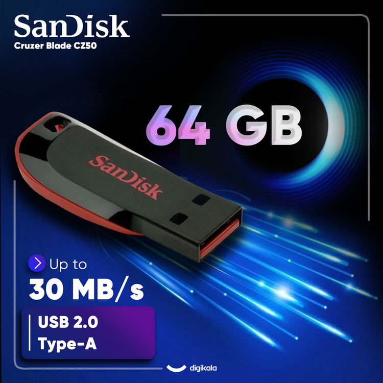 فلش مموری سن دیسک مدل Cruzer Blade CZ50 ظرفیت 64 گیگابایت با رابط USB 2.0