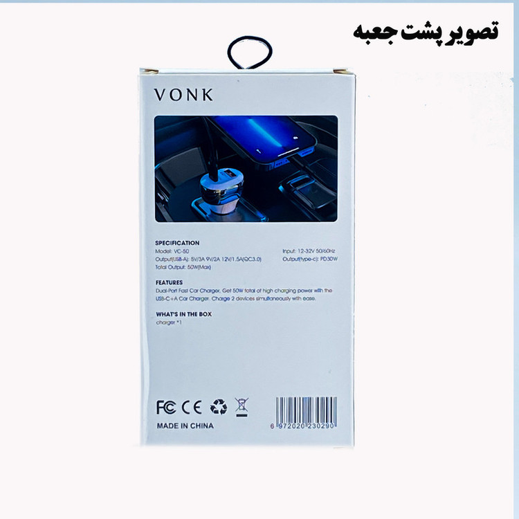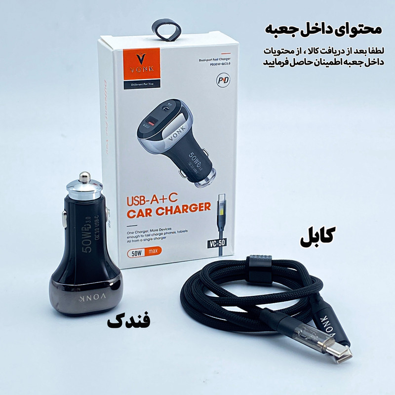 شارژر فندکی VC-50 از برند VONK این محصول جدید و باکیفیت، محصول در سال 2025 طراحی شده است و تمام بروزرسانی های گوشی های جدید سازگاری دارد ( iOS و Android ) و قابلیت شارژ معمولی ، شارژ سریع(Fast Charging) و شارژ خیلی سریع (Super Fast Charging ) و به شما امکان میدهد تا متناسب با نیازتان استفاده کنید ، این فندکی دارای دو خروجی Type-C و USB هست و یک کابل یک متری LED دار Type-C هم داخل جعبه وجود دارد.