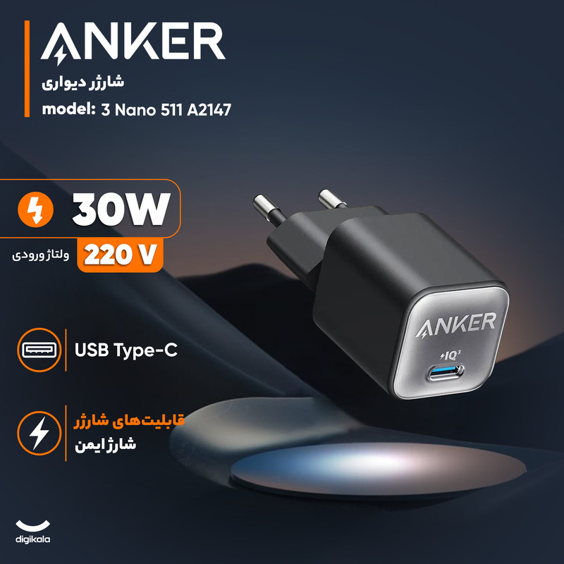 شارژر دیواری 30 وات انکر مدل A2147 511 Nano 3