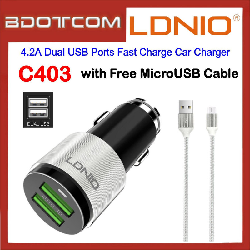 شارژر فندکی الدینیو مدل C403 به همراه کابل تبدیل microUSB