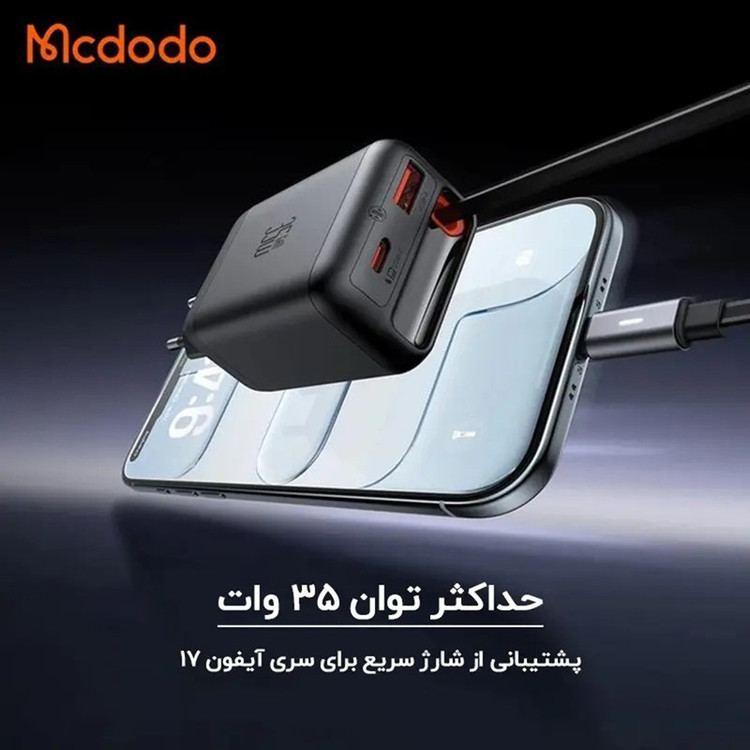 شارژر دیواری 35 وات 3 پورت مک دودو مدل FreeGo CH-1280 با کابل جمع شونده تایپ سی