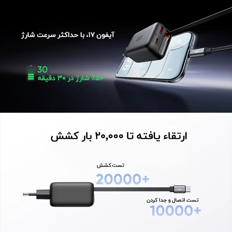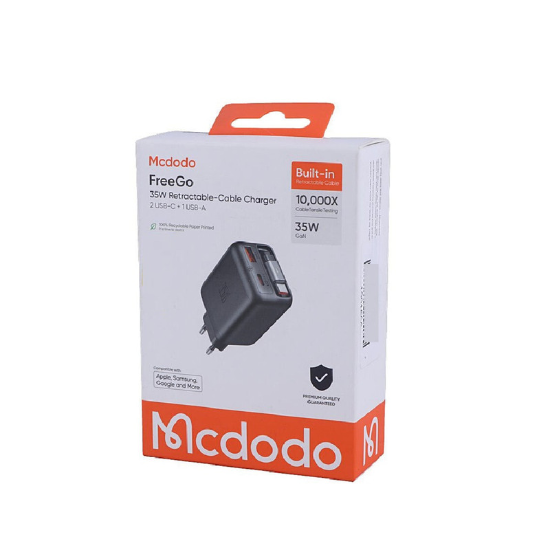 شارژر دیواری 35 وات 3 پورت مک دودو مدل FreeGo CH-1280 با کابل جمع شونده تایپ سی