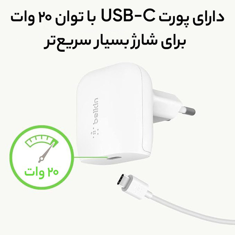 شارژر دیواری بلکین مدل WCA003vf04WH به همراه کابل لایتنینگ