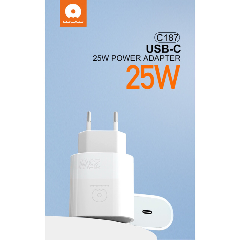 شارژر دیواری 25 وات دبلیو یو دبلیو مدل C187 به همراه کابل تبدیل USB-C