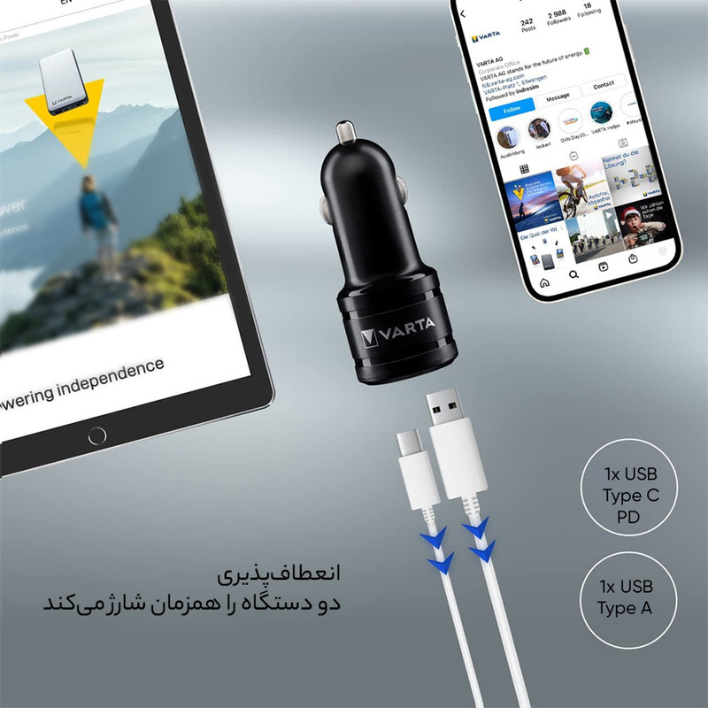 شارژر فندکی وارتا مدل DUAL USB FAST