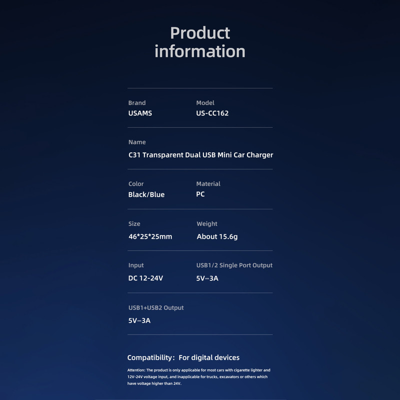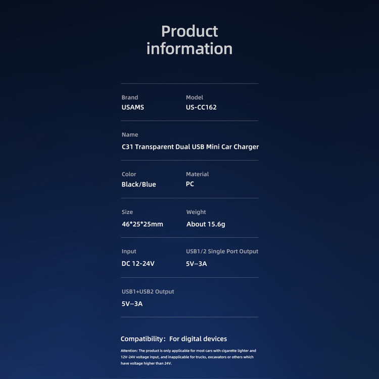 شارژر فندکی یوسمز مدل US-CC162