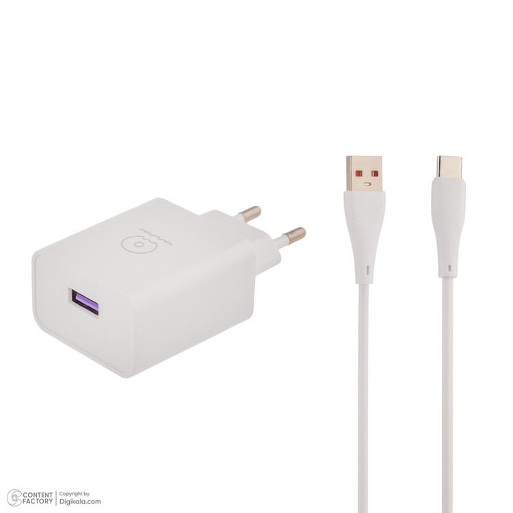 شارژر دیواری 18 وات دبلیو یو دبلیو مدل T95 به همراه کابل USB به USB-C طول 1 متر