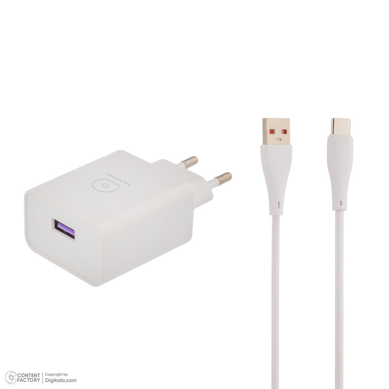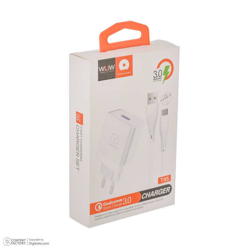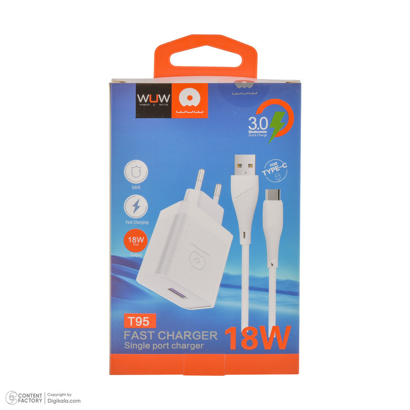 شارژر دیواری 18 وات دبلیو یو دبلیو مدل T95 به همراه کابل USB به USB-C طول 1 متر