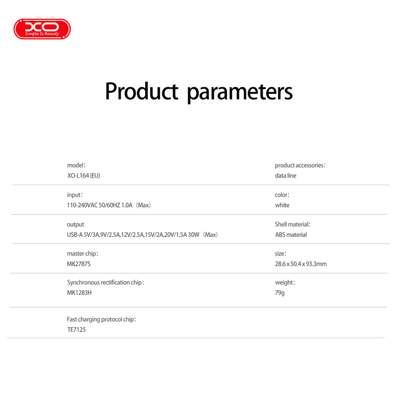 شارژر دیواری 30 وات ایکس او مدل L164 EU به همراه کابل تبدیل USB-C به USB