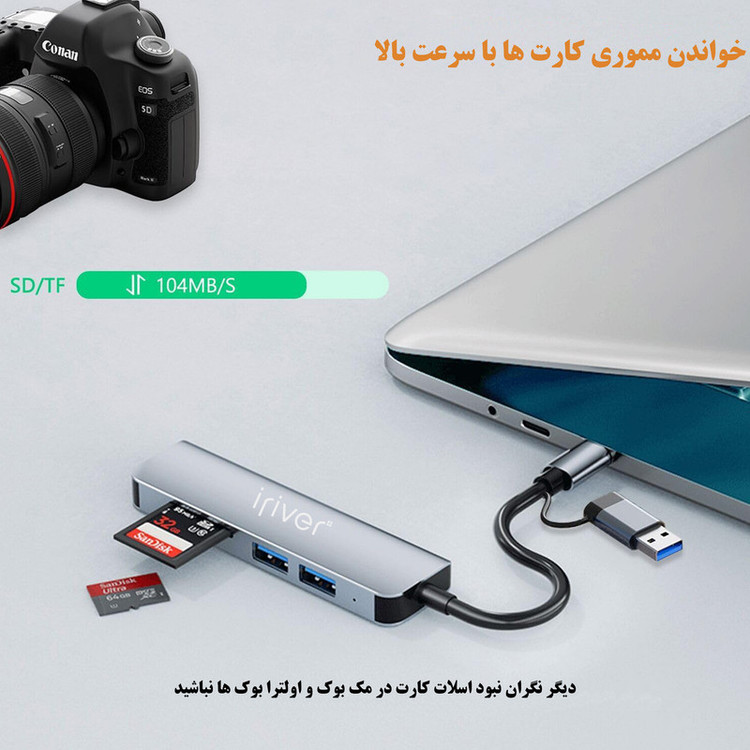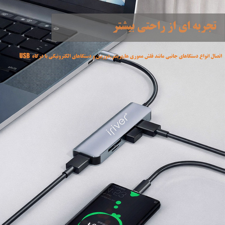 هاب و کارت خوان 5 پورت USB 3.0 آیریور مدل HU-2 DUAL
