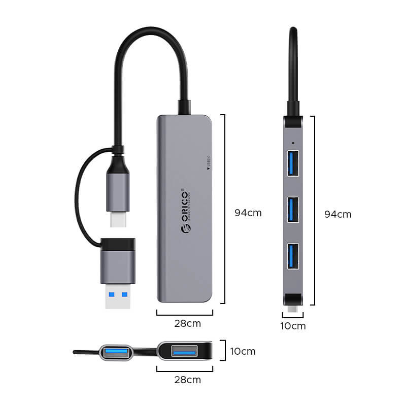 جنس بدنه محصول: ABS, آلیاژ آلومینیوم ورودی: USB-C/A خروجی: USB-A 2.0*3, USB-A3.0*1 سایز: 94mm*23.5mm*10mm پشتیبانی از سیستم عامل: Mac OS, Android, Windows, Linux اندازه کابل: 30 سانتی متر