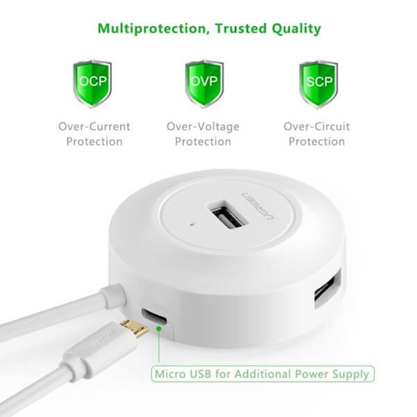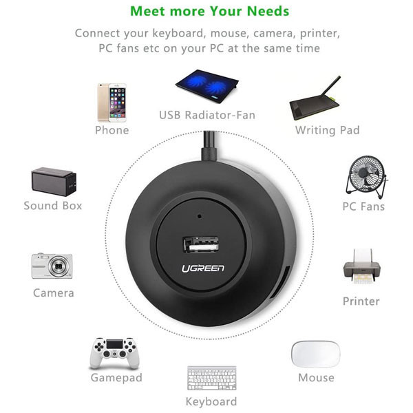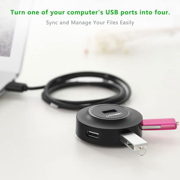 هاب USB با 4 پورت محصول UGREEN است. این محصول از USB ورژن 2 با سرعت بالا پشتیبانی میکند . کاربر به راحتی میتواند ابزارهای جانبی مختلفی مانند کیبورد، ماوس، دوربین و حتی پرینتر خورد را متصل کند.