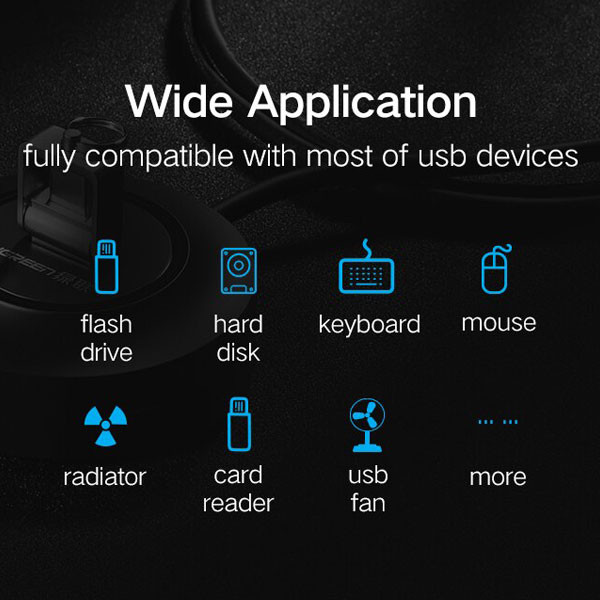 هاب USB با 4 پورت محصول UGREEN است. این محصول از USB ورژن 2 با سرعت بالا پشتیبانی میکند . کاربر به راحتی میتواند ابزارهای جانبی مختلفی مانند کیبورد، ماوس، دوربین و حتی پرینتر خورد را متصل کند.