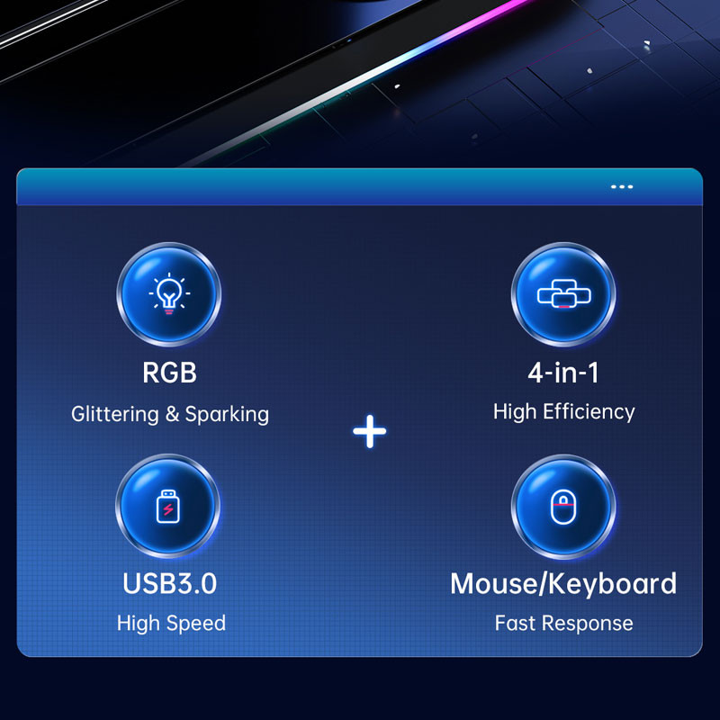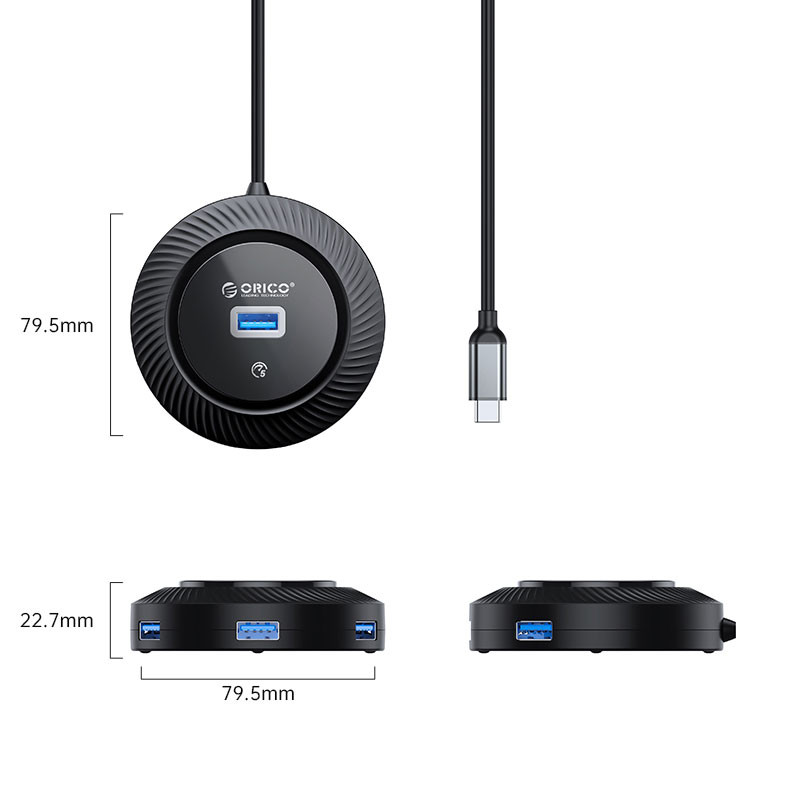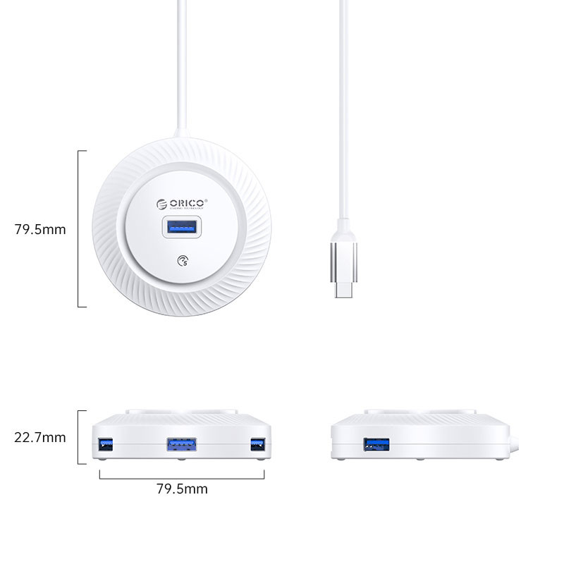 جنس بدنه محصول ABS ورودی Type-C خروجی USB-A 2.۰x3+USB-A ۳.۰x1 سرعت انتقال ۵Gbps سایز 79.5mmx79.5mmx22.7mm طول کابل/ نوع کابل : 30 سانتی متر / Type-C پشتیبانی از سیستم عامل Android, Windows, Linux, Mac