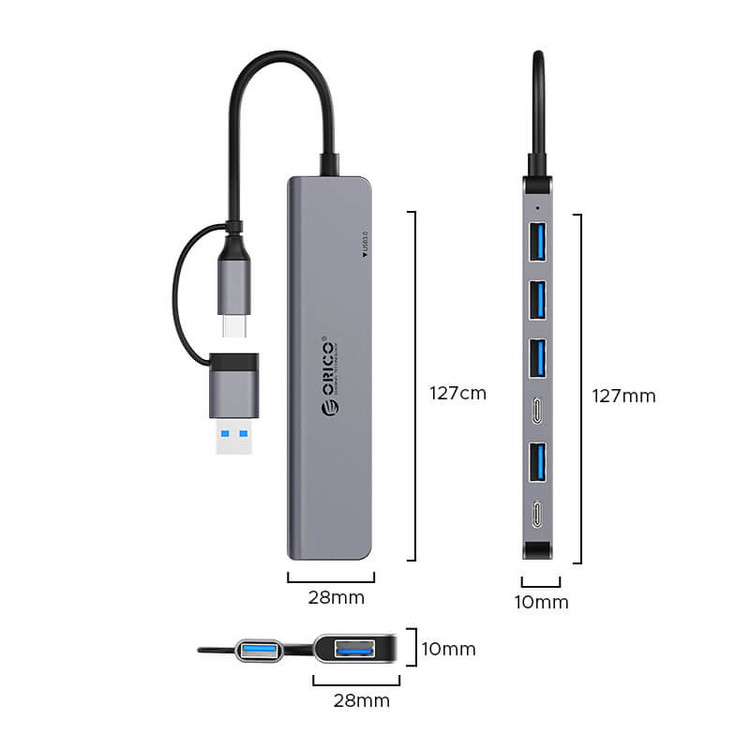 جنس بدنه محصول : آلیاژ آلومینیوم, پلاستیک ورودی: USB-C/A خروجی: USB-A 2.0*4, USB-A 3.0*1, USB-C 2.0*2 سایز: 127mm*23mm*10mm پشتیبانی از سیستم عامل: Mac OS, Android, Windows, Linux اندازه کابل : 17 سانتی متر